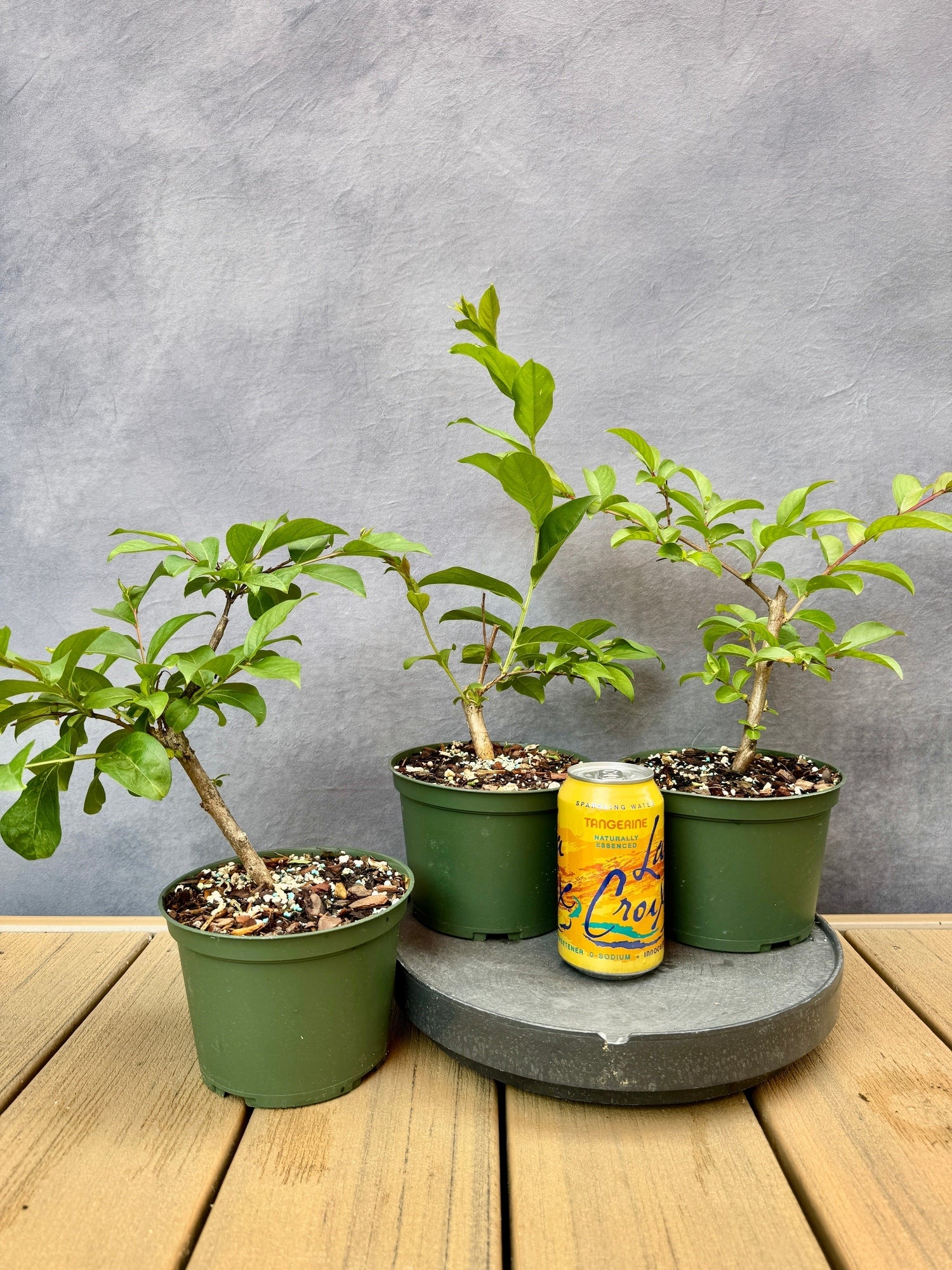 Crape Myrtle (Lagerstroemia indica) is a celebrated bonsai subject, prized for its impressive twiggy branching structure and remarkable potential for stunning nebari. These vigorous starts offer an excellent foundation for crafting eye-catching bonsai specimens. The Crape Myrtle's smooth, exfoliating bark and attractively mottled trunk provide year-round visual interest. In summer, vibrant pink flower clusters adorn the branches, adding seasonal flare. All trees have been cutting grown from a very old, impressive specimen mother tree.