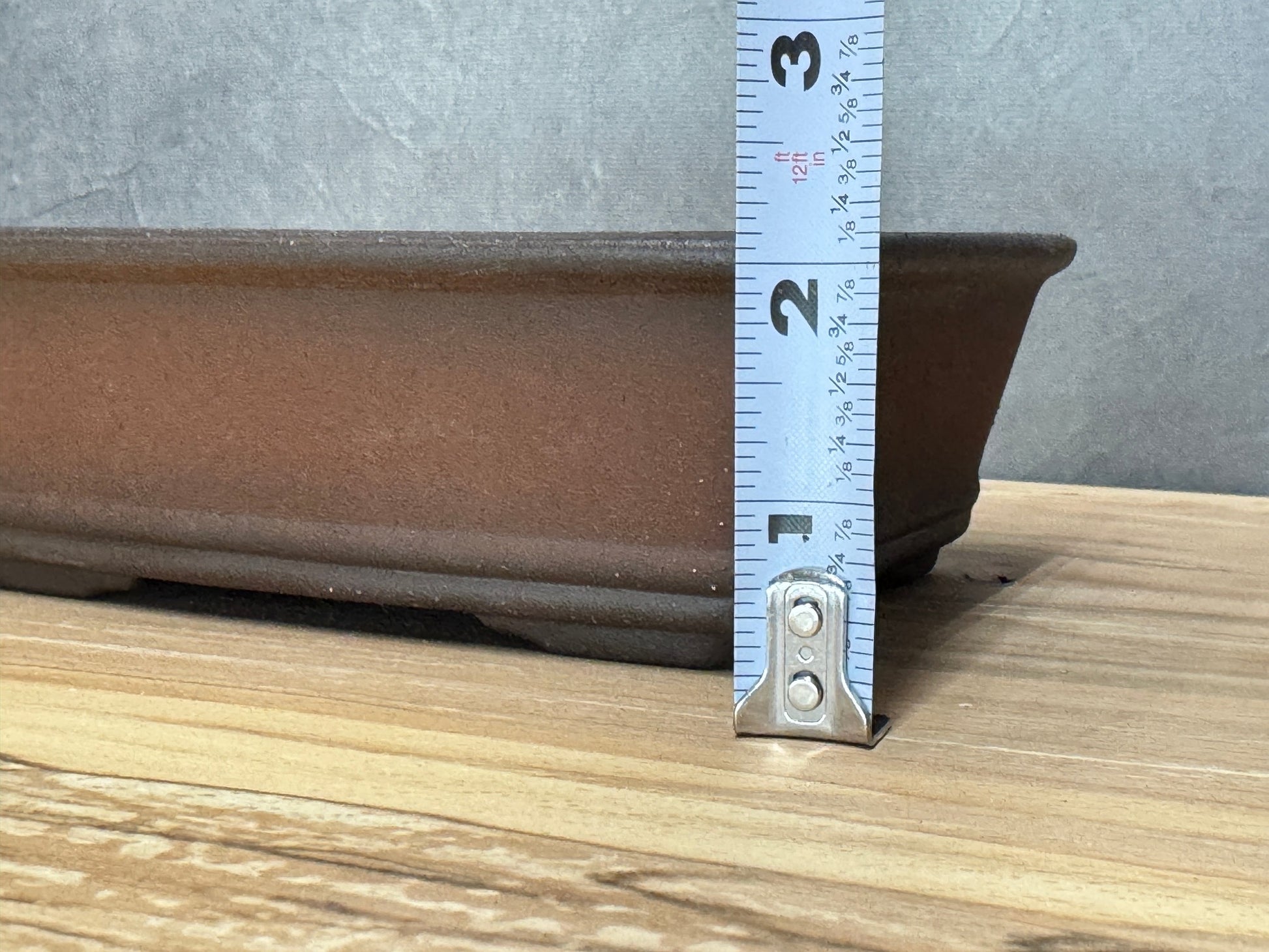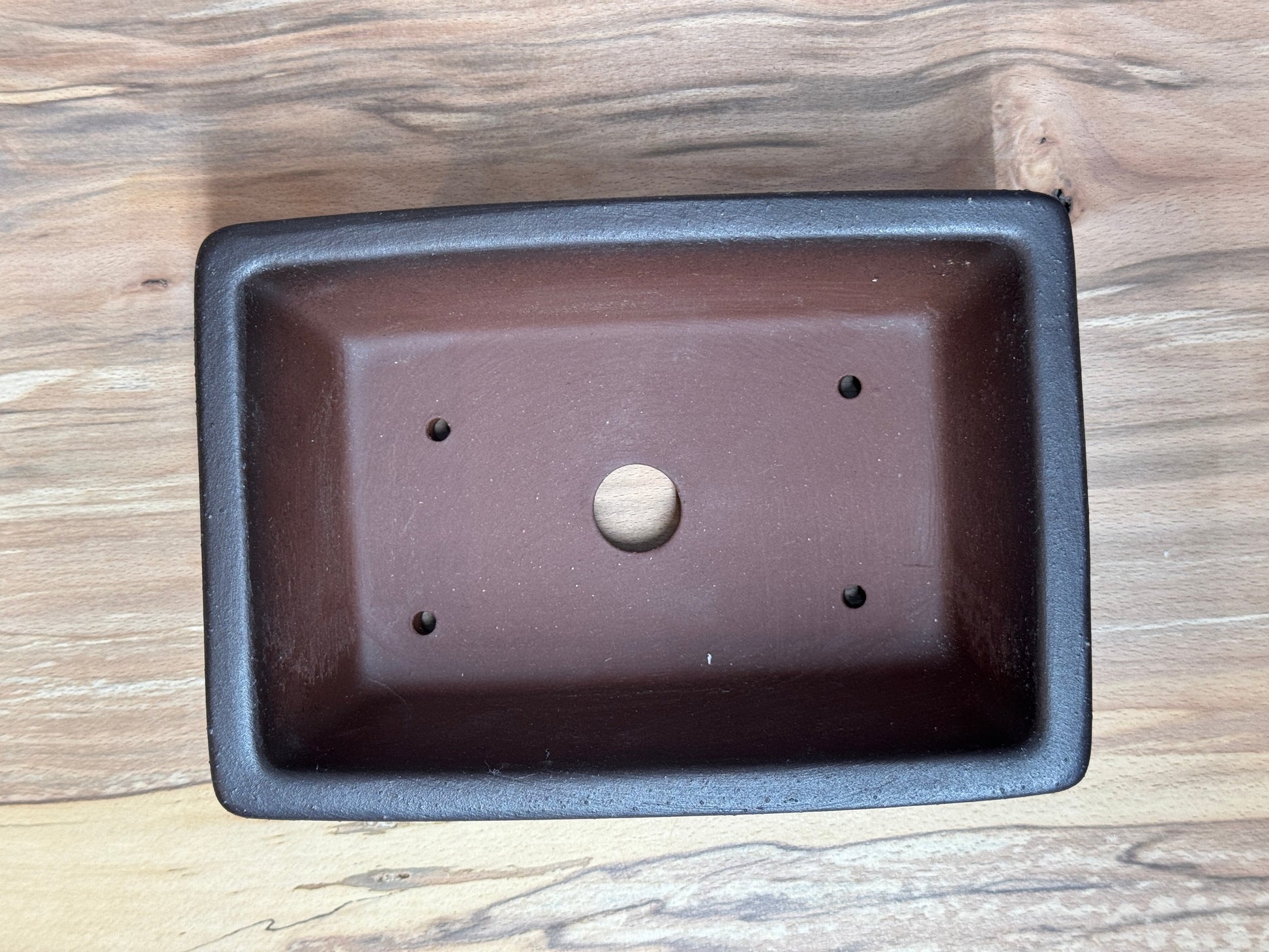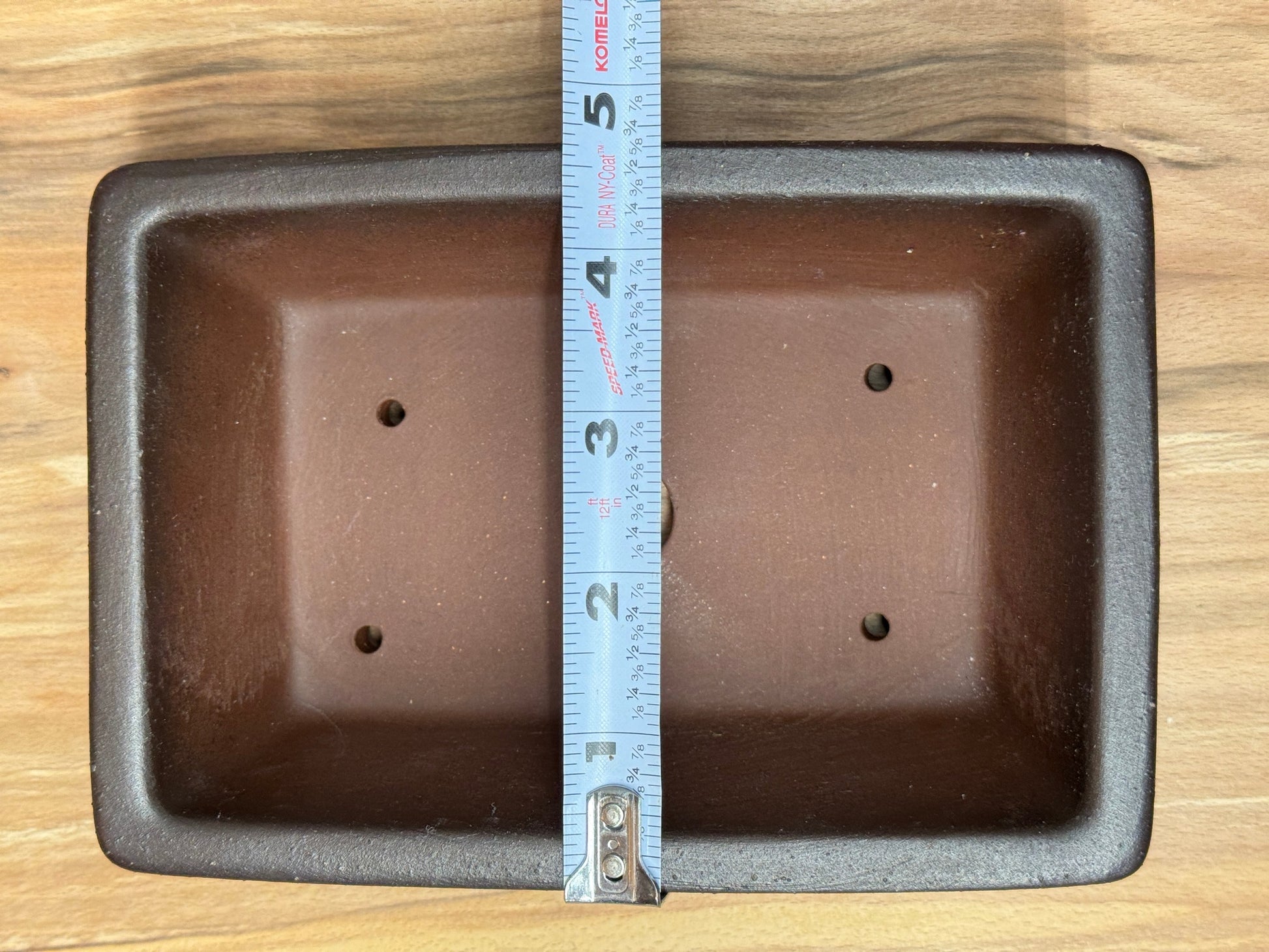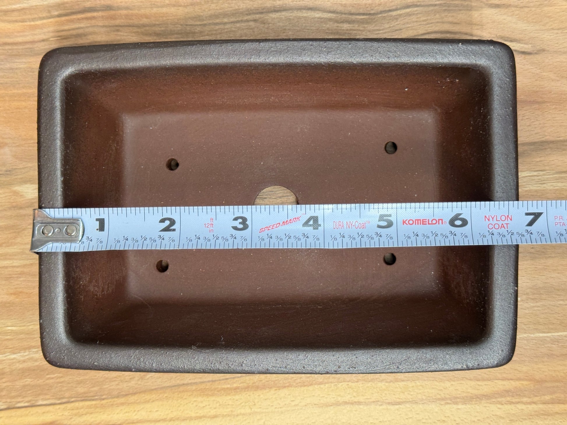 Classic and adaptable Yixing unglazed rectangle sporting a nice horizontal gradient. Chop mark/stamp on bottom. A more entry-level pot made with natural red clay.
