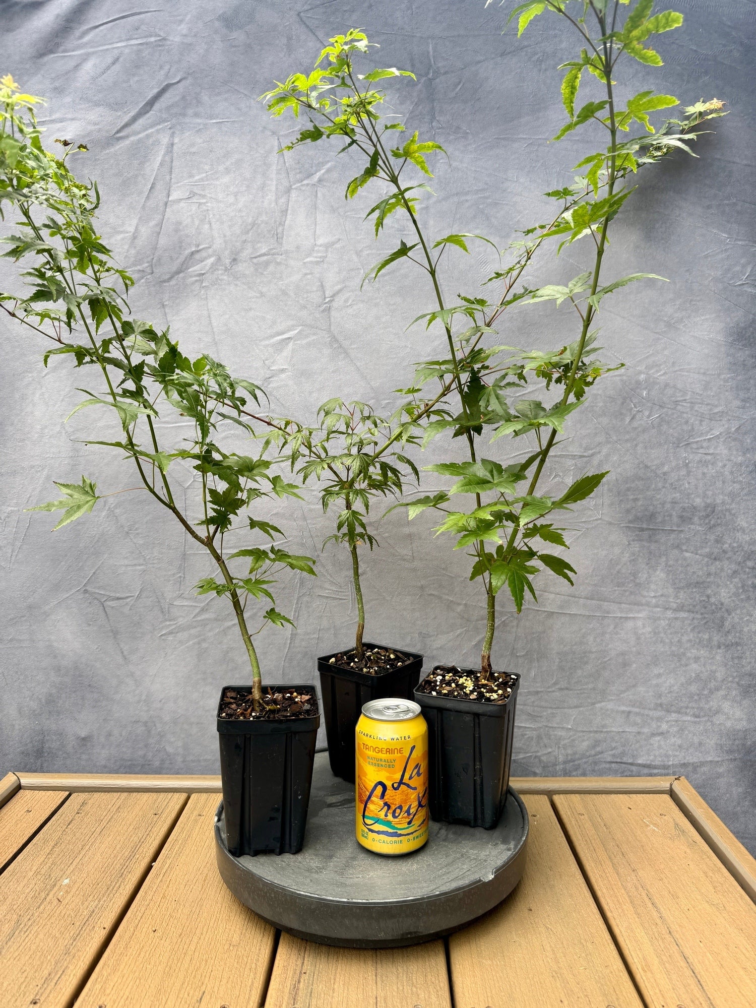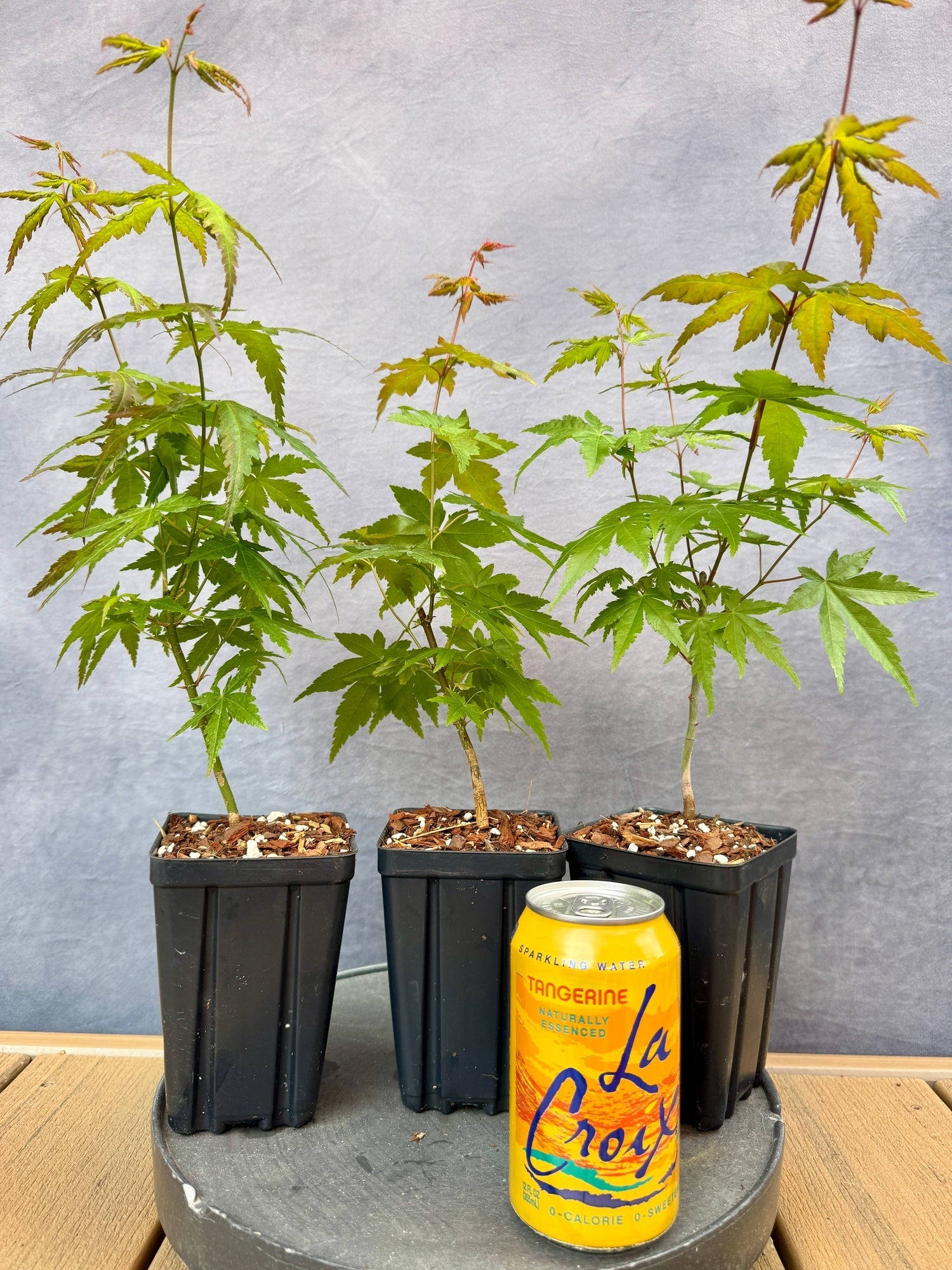 Arguably the quintessential deciduous bonsai species, the Japanese Maple (Acer palmatum) is a fantastic and versatile tree. These specimens are standard green mountain maples grown from seed -- usually Mikawa Yatsubusa, Seiryu, or similar -- that display standard A. palmatum characteristics rather than those of their parent. Boasting vibrant green leaves that often transition to fiery hues in autumn for a captivating seasonal display, they offer endless possibilities for bonsai styling, from elegant informal uprights to dramatic cascades.