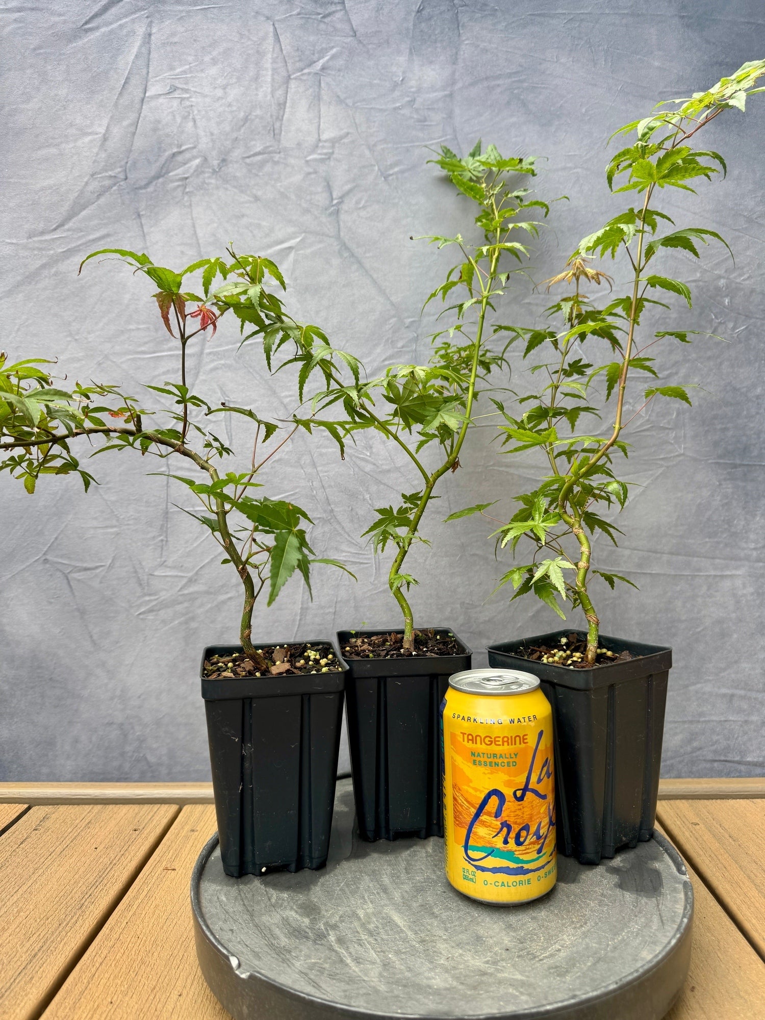 Arguably the quintessential deciduous bonsai species, these Japanese Maples were wired up for movement in their first year of growth so the trunks have wonderful, dynamic visual interest. These starts are standard green mountain maples grown from seed -- usually Mikawa Yatsubusa -- that display standard A. palmatum characteristics rather than those of their parent.
