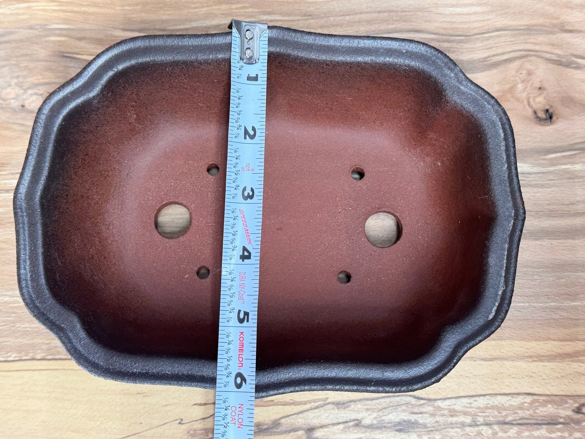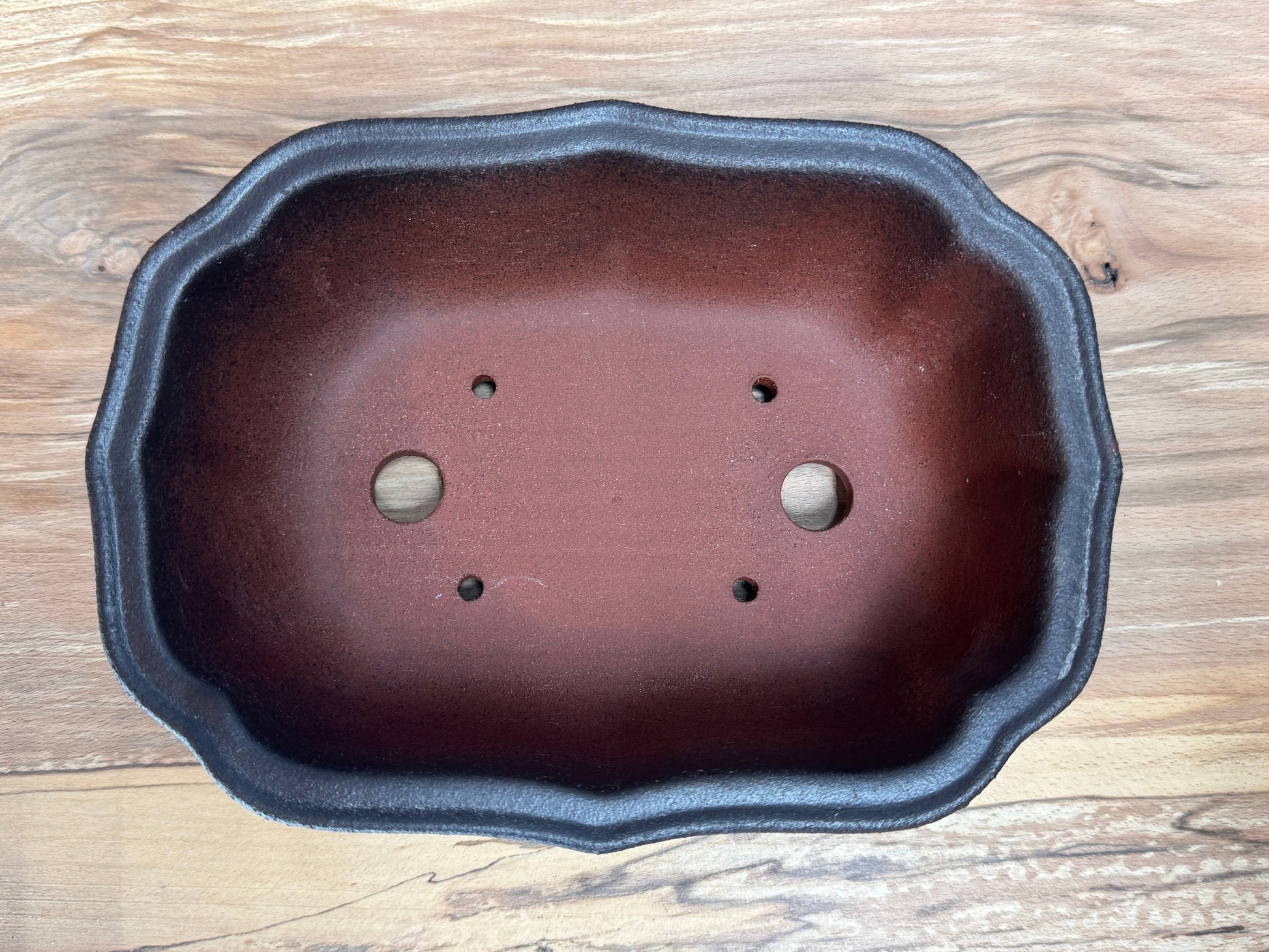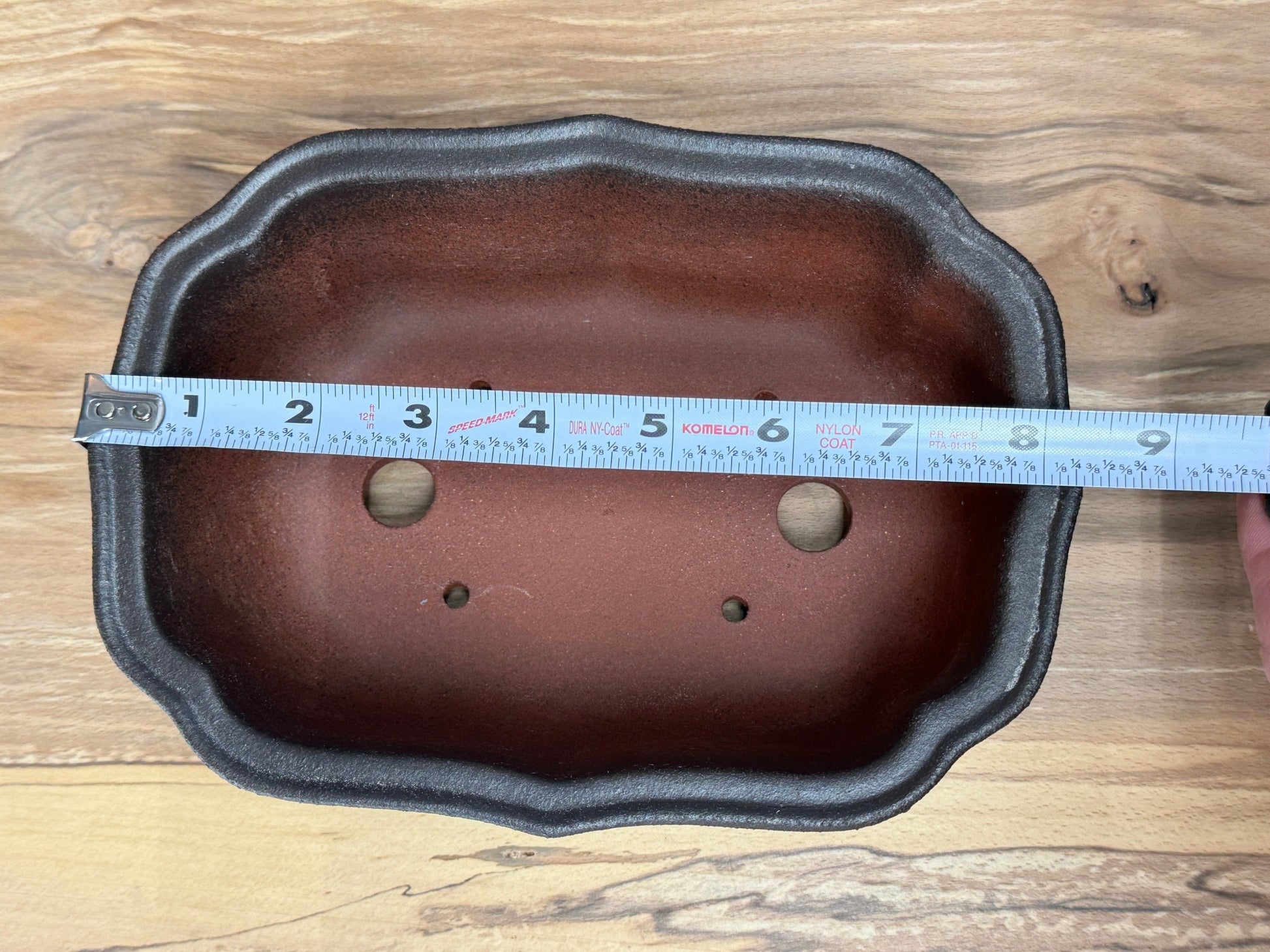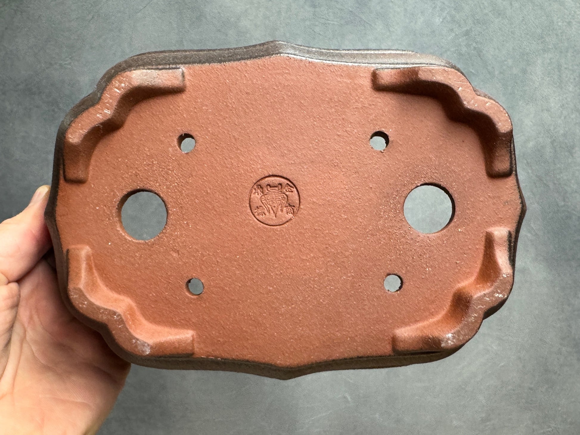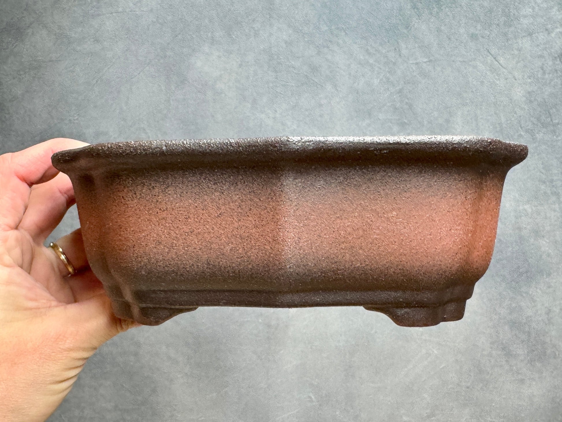 This elegant pot sports a horizontal gradient finish and a unique lotus design on a rectangle form. Chop mark/stamp on bottom. A more entry-level pot made with natural red clay.