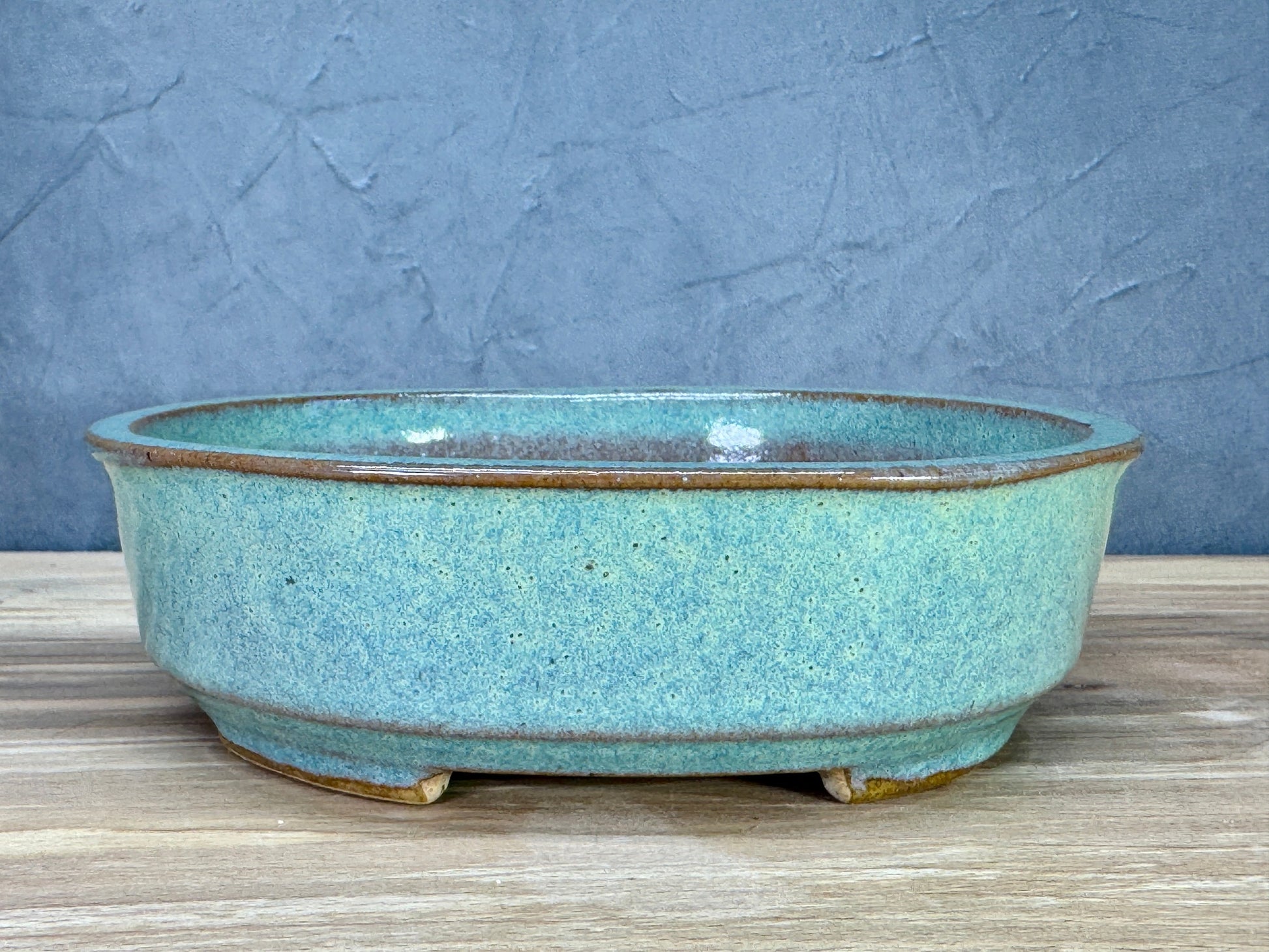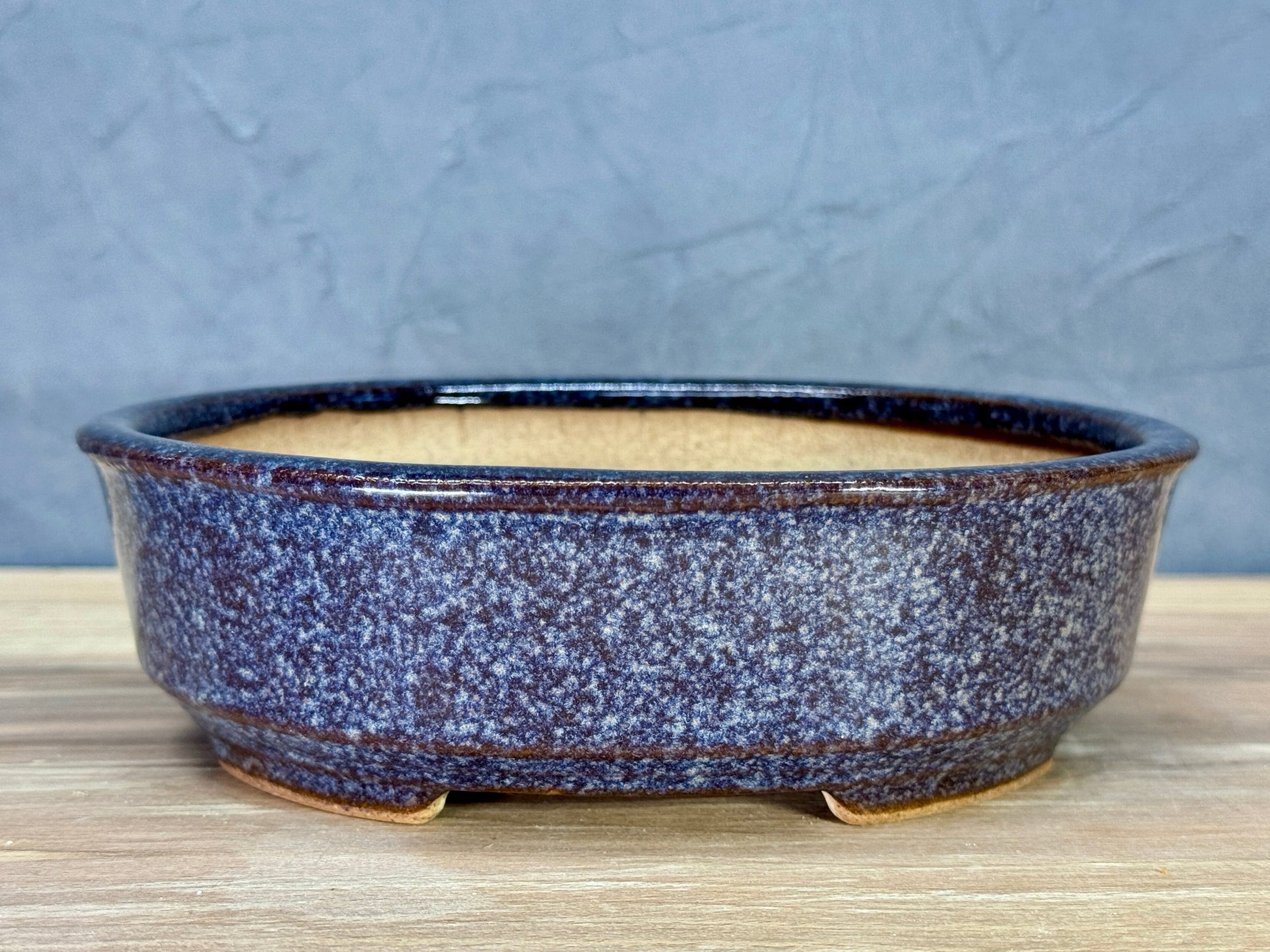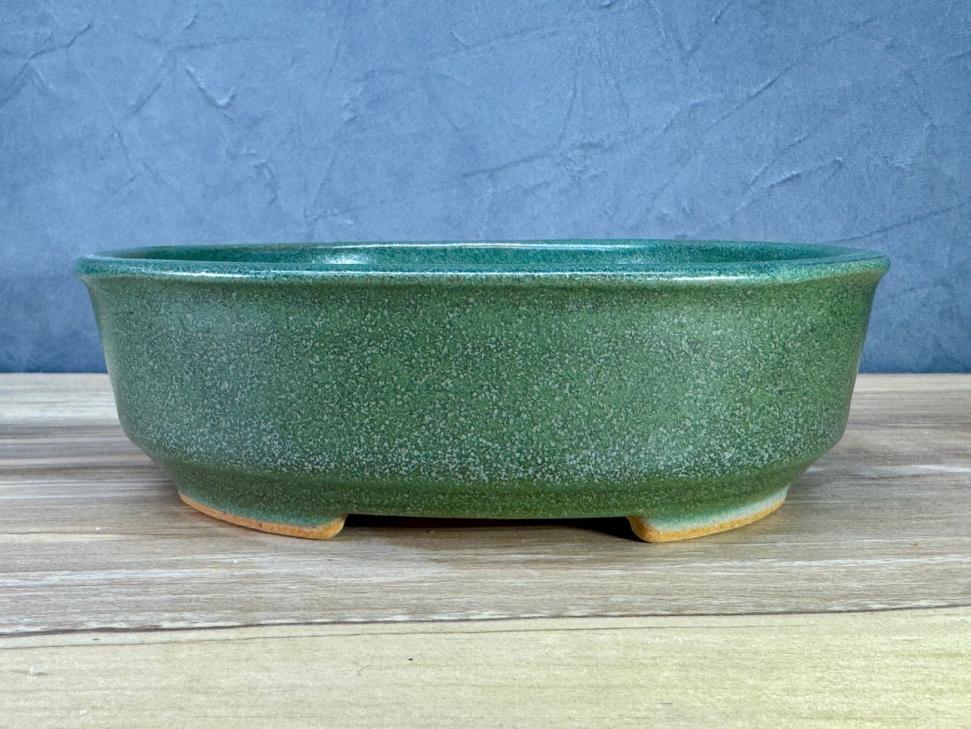 These higher quality Korean ovals feature a variety of glaze options and are perfect for shohin and kifu size trees. Beautiful detail in the finishes, all of which show complex textures on a classic form. Chop mark/stamp on bottom.
