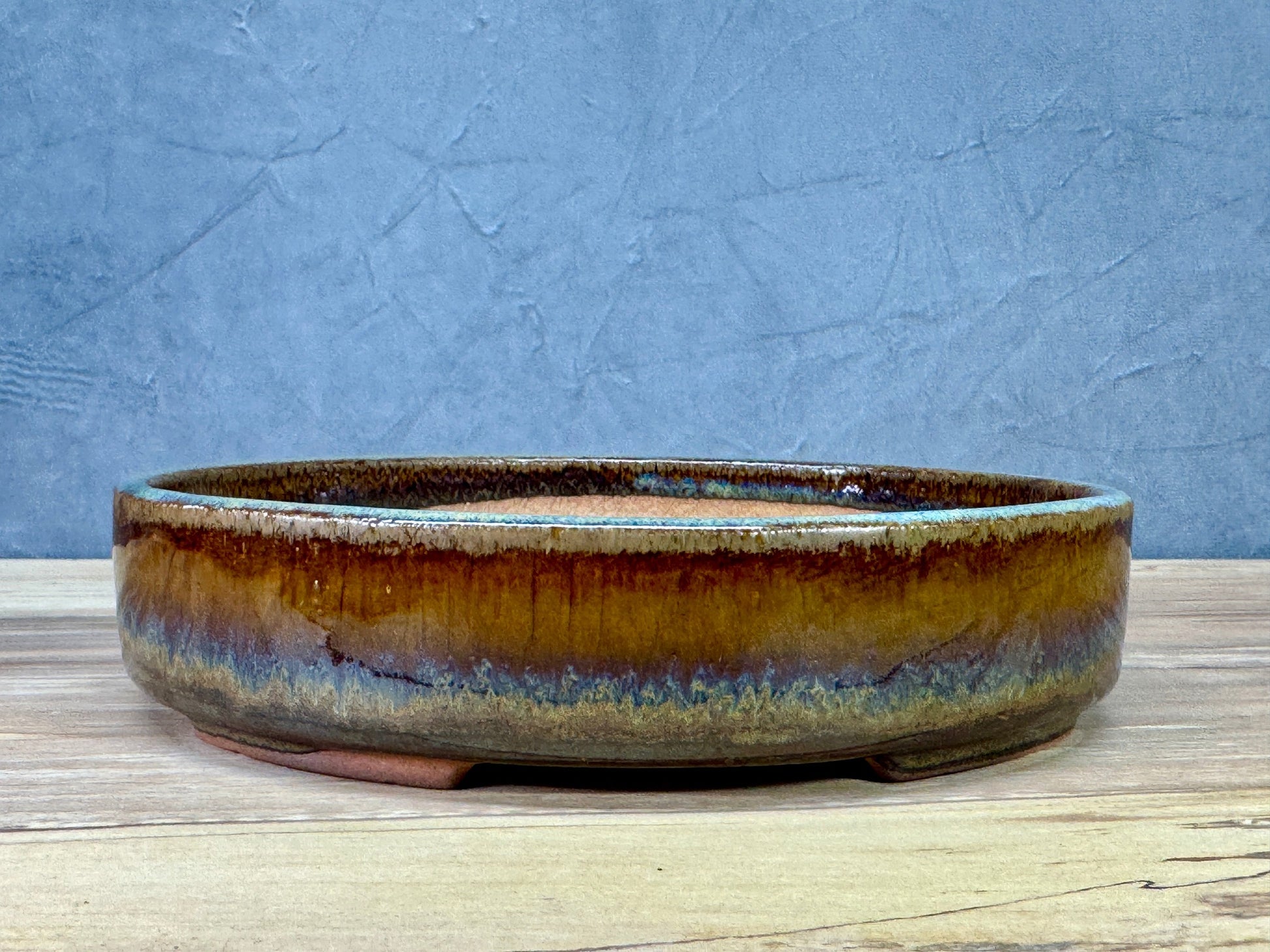 These higher quality Korean ovals feature a variety of glaze options. Beautiful detail in the finishes, all of which show complex textures and layering over a minimal, clean form. Chop mark/stamp on bottom.