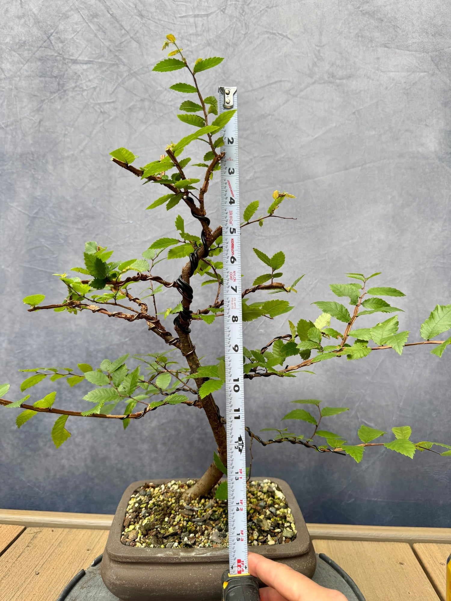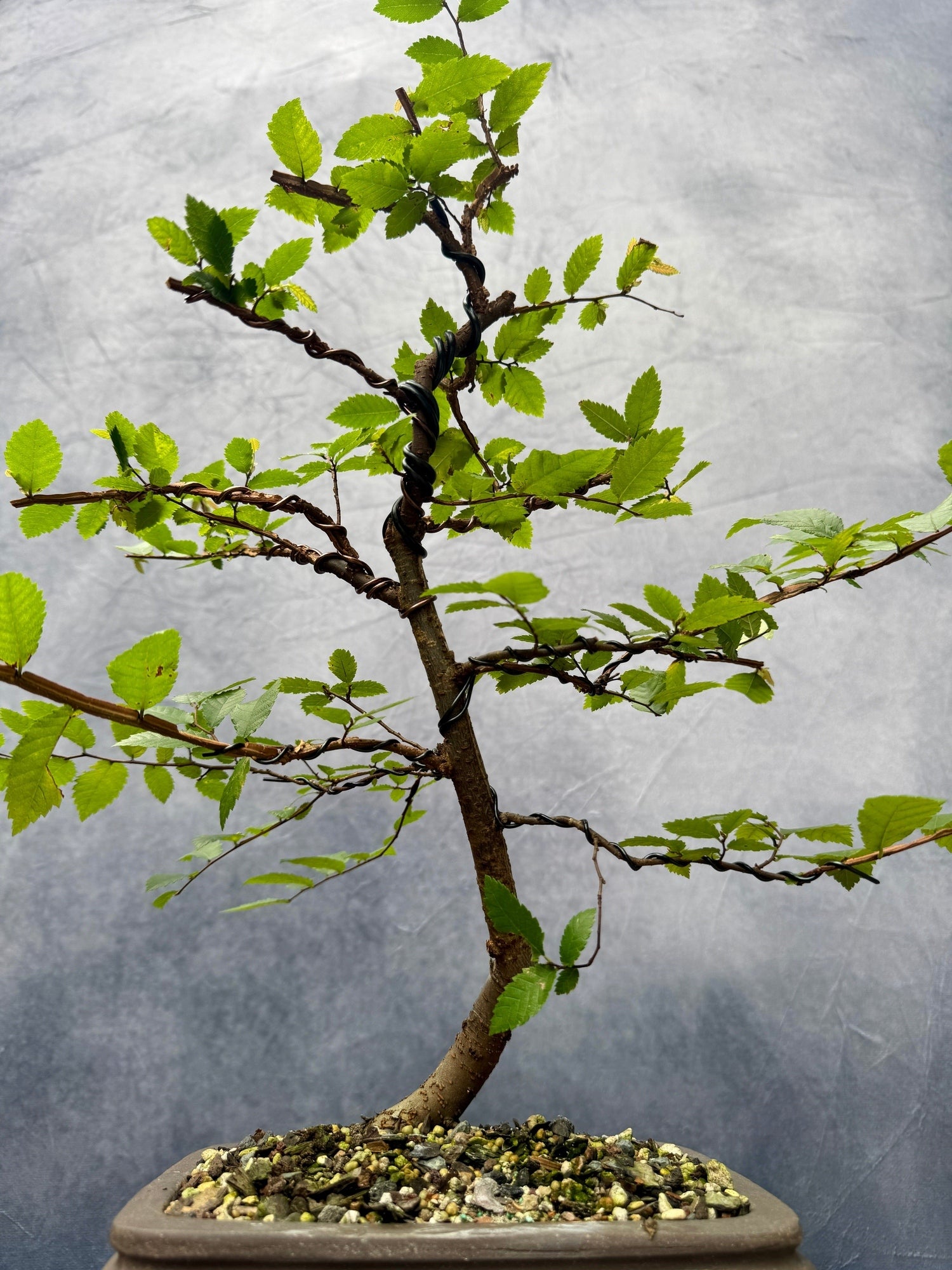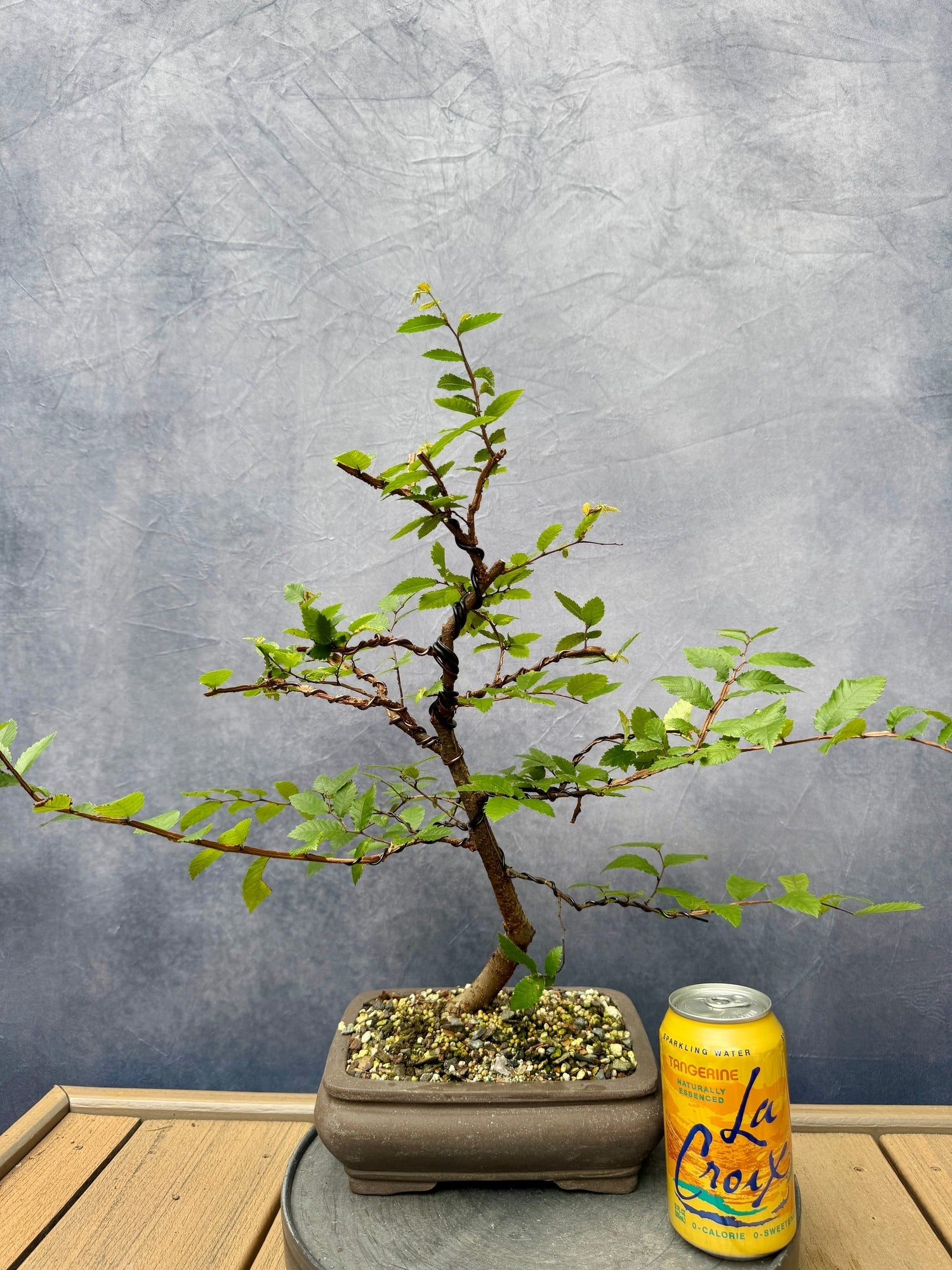 An excellent native species for bonsai, albeit lesser-known, but growing in popularity over the lat decade. This tree has been lightly worked the last couple years including root work spring of 2024. We left lots of branching options open and it's ready for your next moves! In ~8" unglazed Chinese production pot.